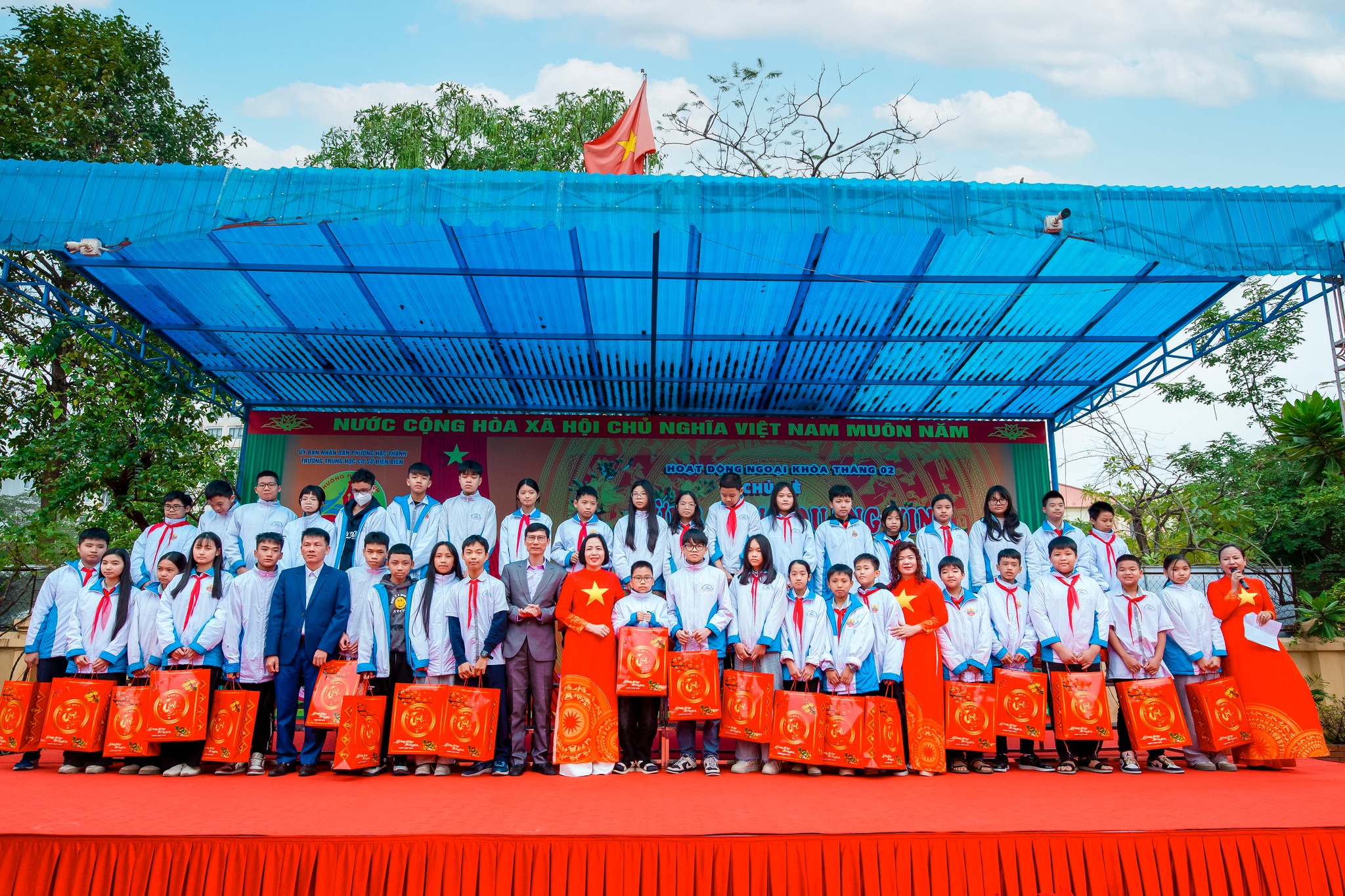 Nhân dịp này, nhà trường cũng đã trao tặng những phần quà ý nghĩa tới các em học sinh có hoàn cảnh khó khăn nhưng luôn nỗ lực vươn lên trong học tập và rèn luyện, thể hiện sự quan tâm, sẻ chia, tinh thần nhân ái – một nét đẹp truyền thống của Trường THCS Điện Biên.