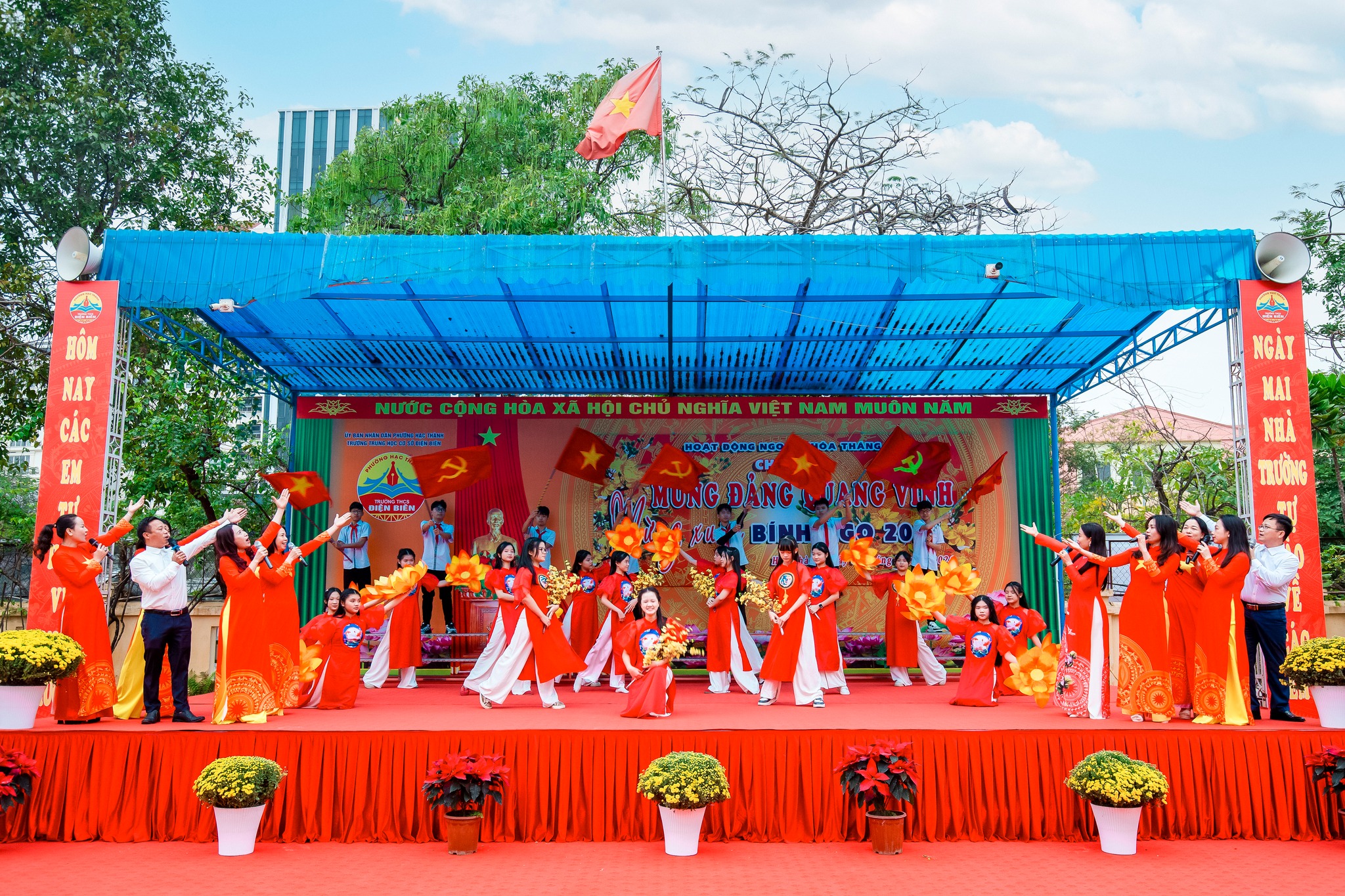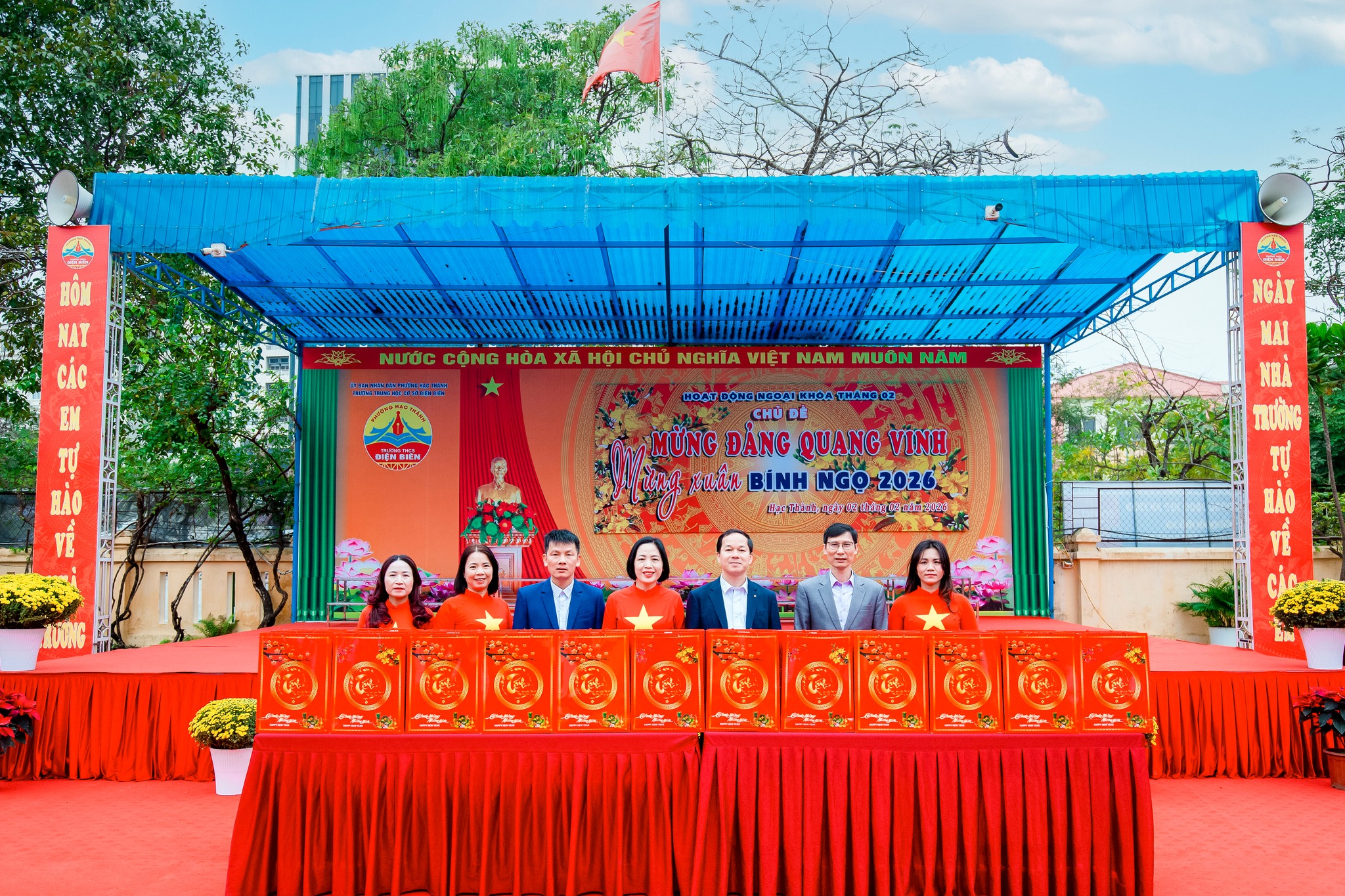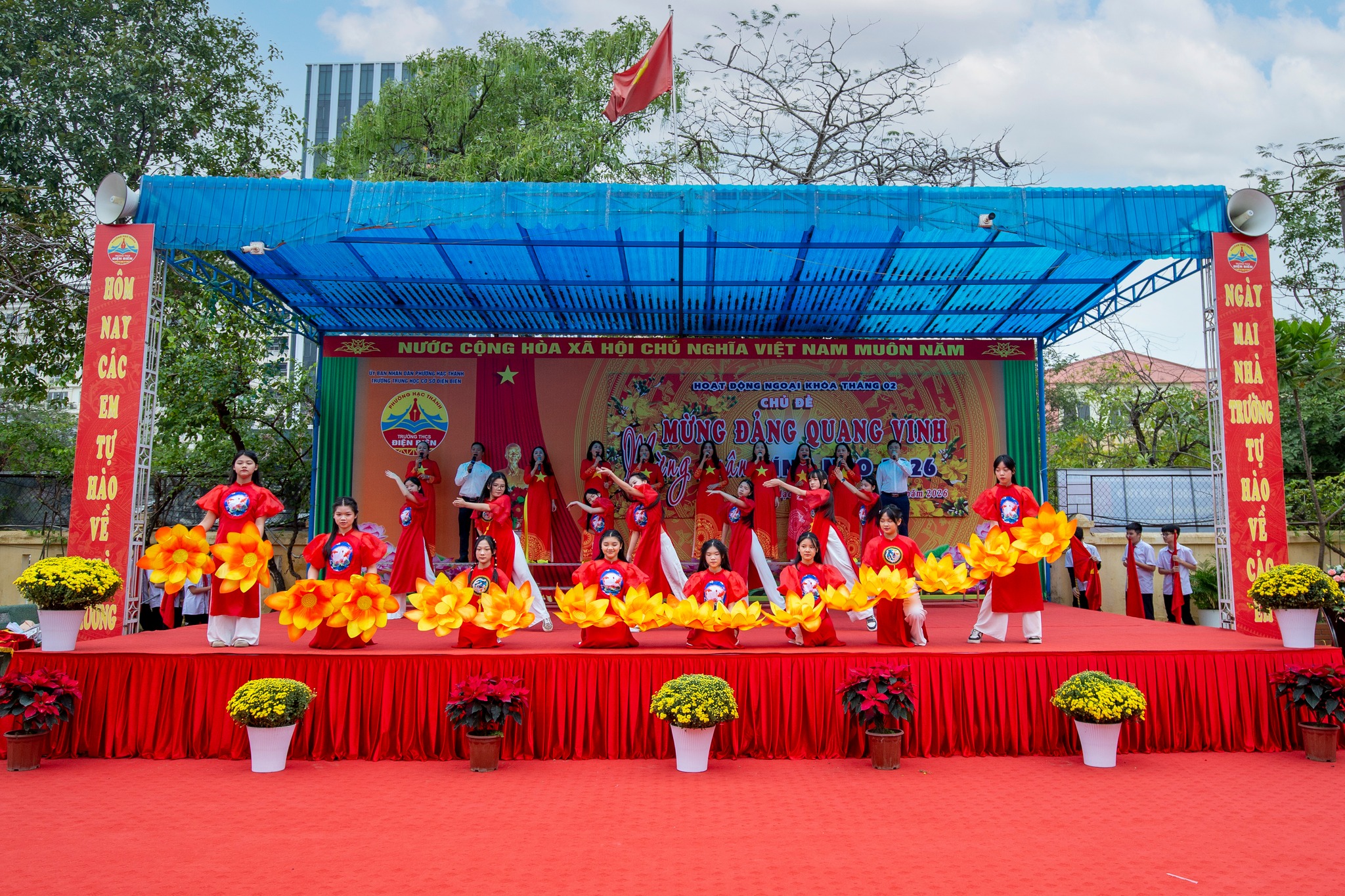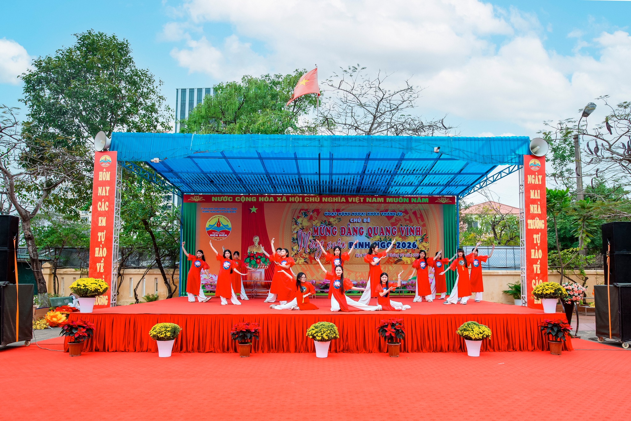 Hòa chung không khí vui tươi, phấn khởi của toàn Đảng, toàn dân và toàn quân cả nước hân hoan chào đón thành công rực rỡ của Đại hội đại biểu toàn quốc lần thứ XIV của Đảng Cộng sản Việt Nam, sáng ngày 02/02/2026, Trường THCS Điện Biên đã tổ chức buổi sinh hoạt dưới cờ và hoạt động ngoại khóa tháng 02 với chủ đề “Mừng Đảng quang vinh – Mừng xuân Bính Ngọ 2026”.